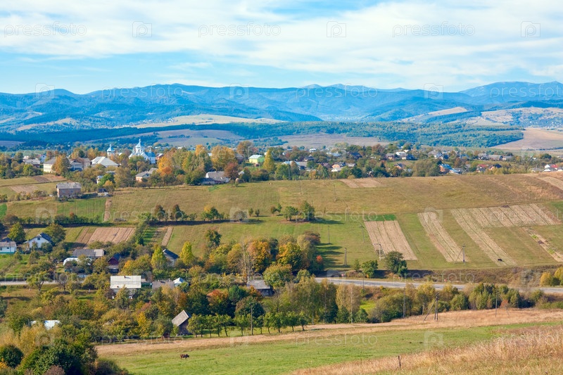 Вид с горы на сельскую местность