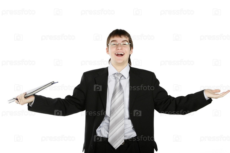 Молодой счастливый успешный бизнесмен или студент, изолированный