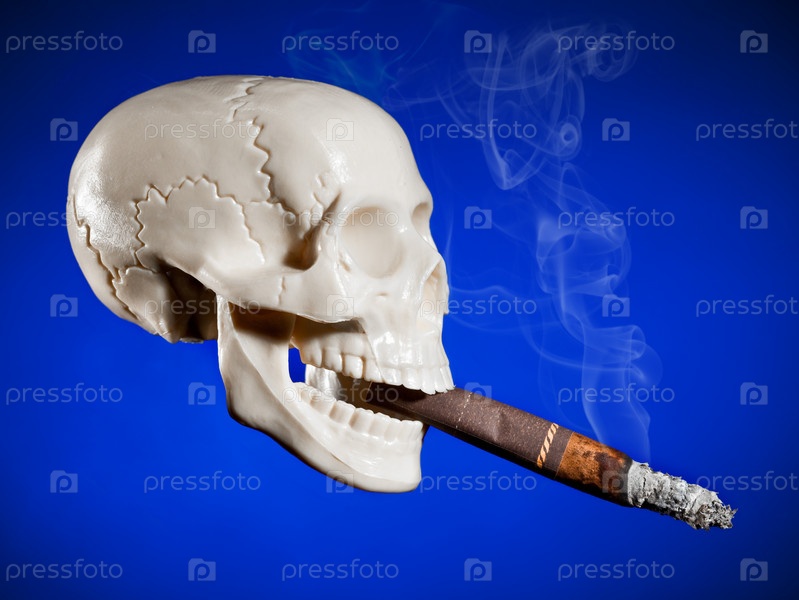 Человеческий череп с сигарой в зубах