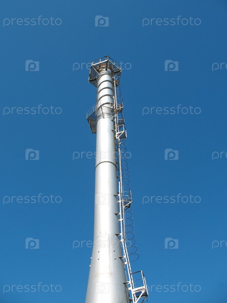 Заводская труба на фоне синего неба