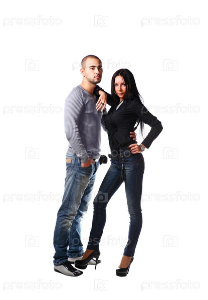 Красивая молодая пара на белом фоне