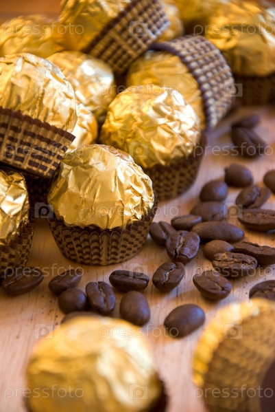 Шоколадные конфеты и кофейные зерна
