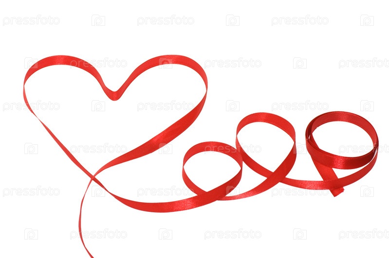 Сердце из красной ленты на белом фоне