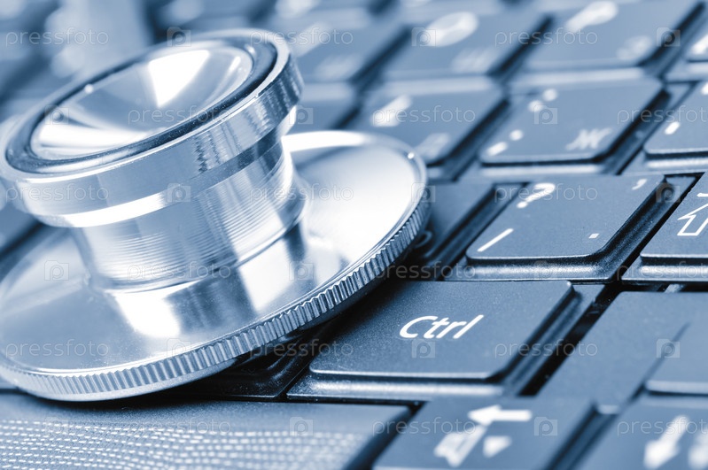 Стетоскоп на клавиатуре компьютера