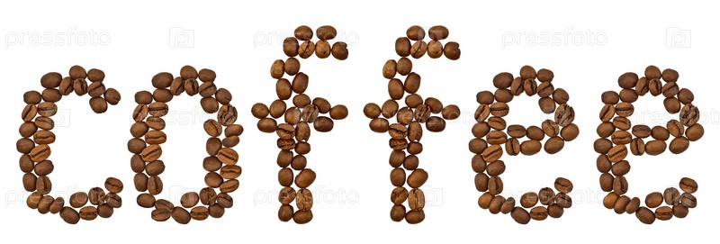 Слово "кофе" из кофейных зерен на белом фоне