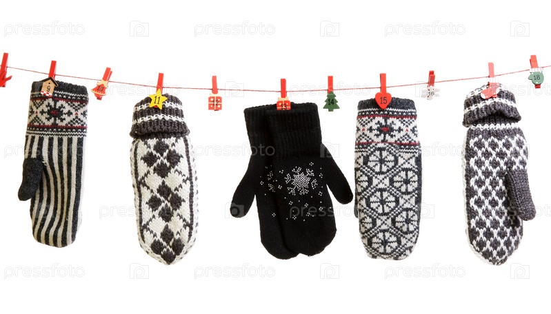 Вязаные варежки на белом фоне
