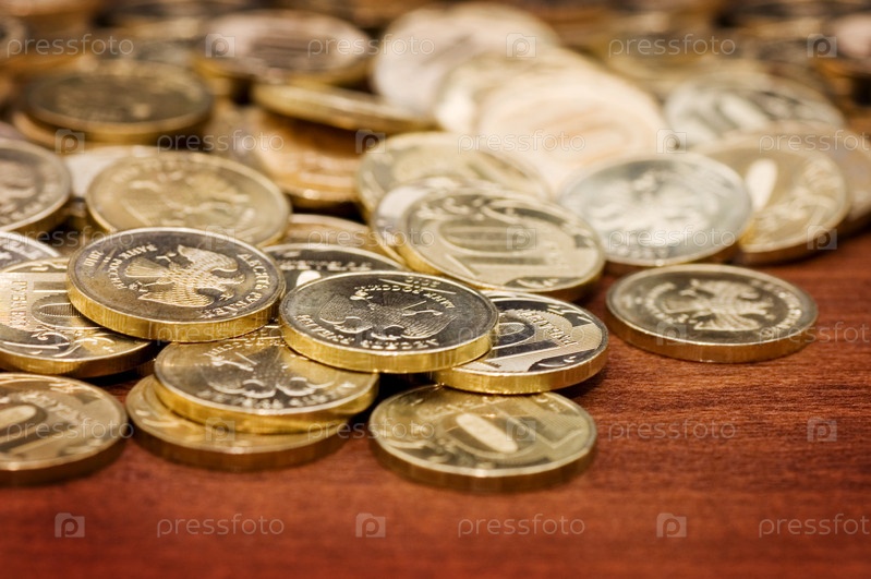 Денежные монеты на деревянном столе