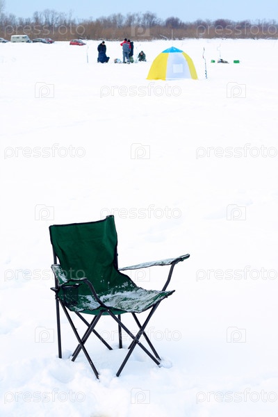 Складной стул зимой на снегу