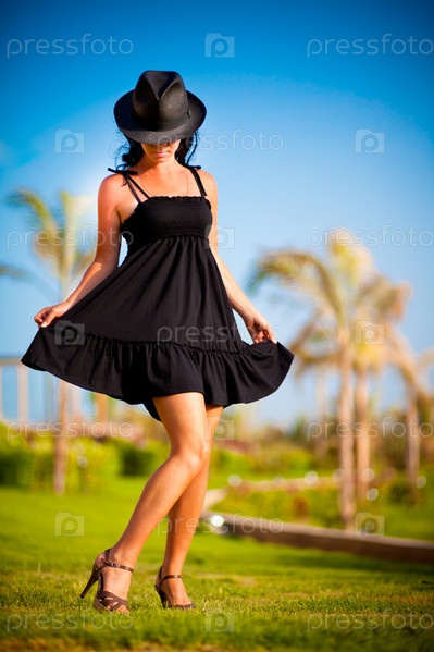 Девушка в черном платье и в шляпе