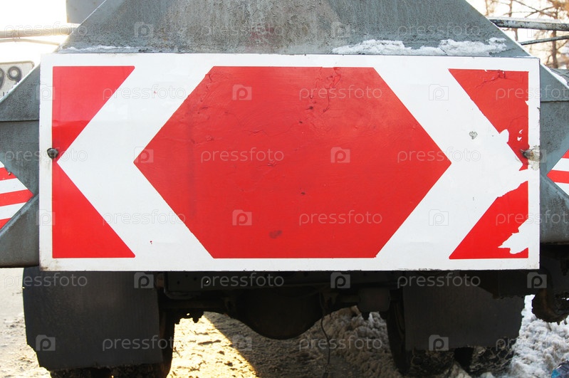 Красно-белый сигнальный знак на дорожной спецтехнике