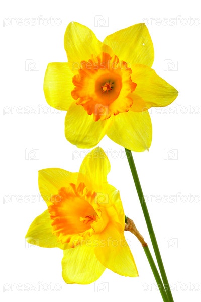 Два желтых нарцисса изолированы на белом фоне