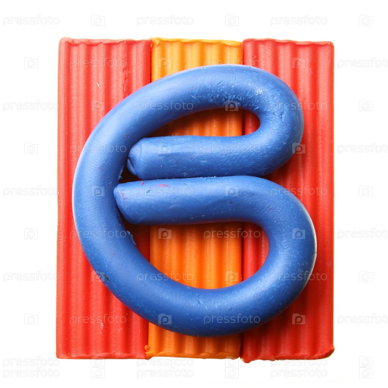 Синяя буква В на куске пластилина. Изоляция на белом фоне