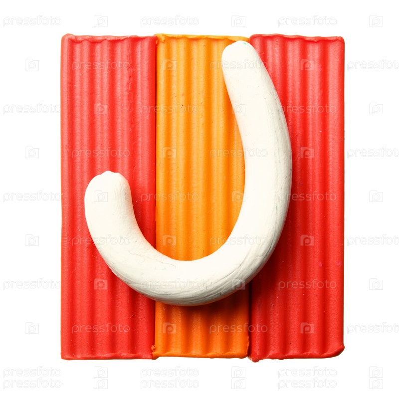 Буква J на куске пластилина, изолированного на белом фоне