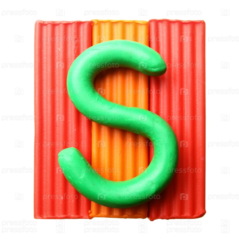 Буква S на куске пластилина, изолированного белым