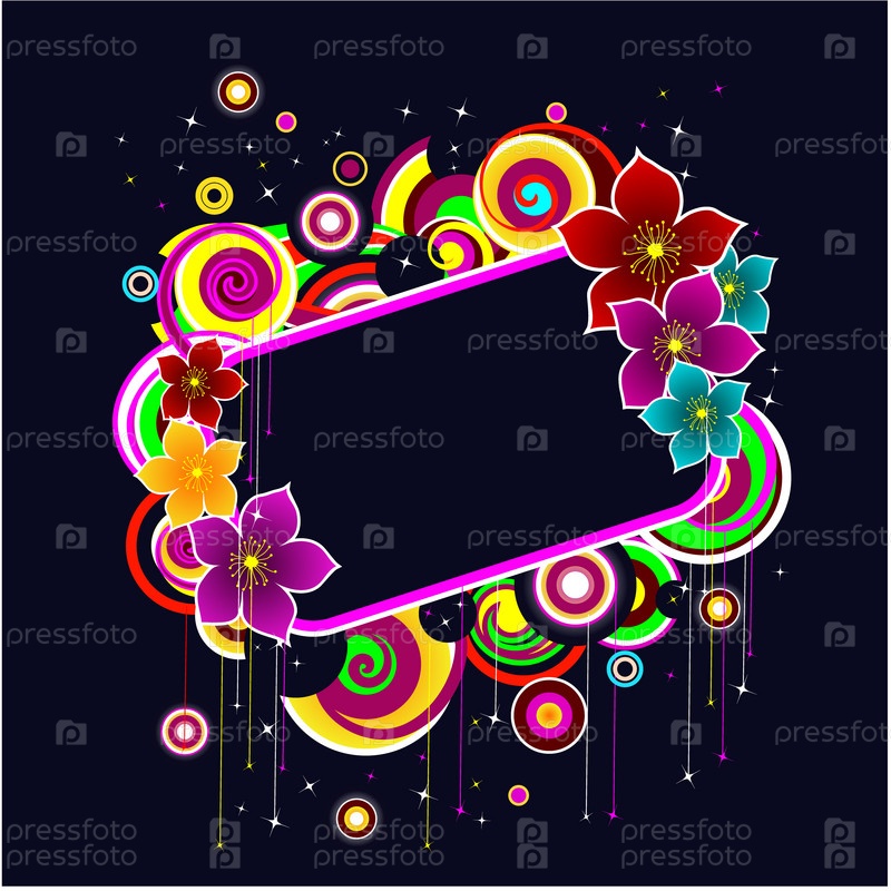 Рамка из ярких разноцветных цветов на темном фоне