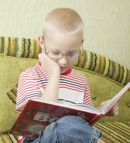 Мальчик читает книгу дома