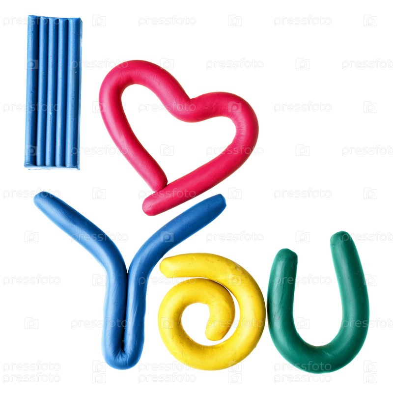 Надпись Я ТЕБЯ ЛЮБЛЮ из пластилина изолирована на белом