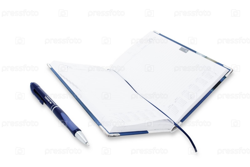 Блокнот с ручкой на белом фоне