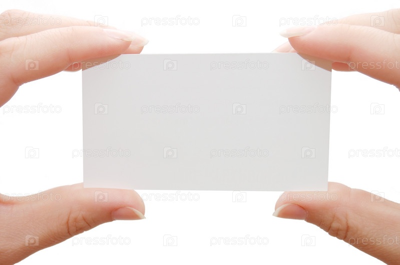 Пустая белая карточка в женских руках на белом фоне
