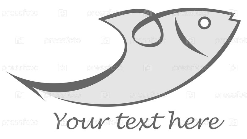 Векторные контуры изображения серой морской рыбы на белом фоне Морская пища Символ, эмблема, стилизованная татуировка, икона