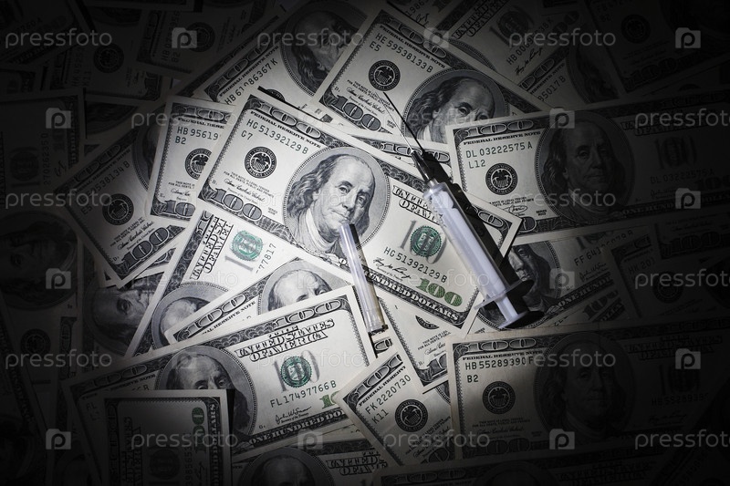 Шприц на фоне долларовых банкнот