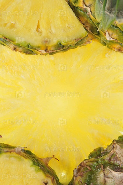 Круглые части ананаса на желтом фоне