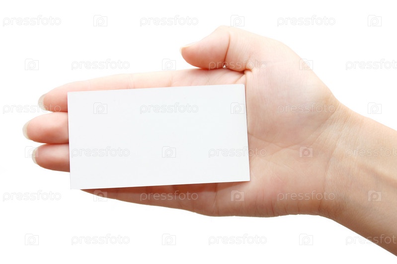 Визитка в руке на белом фоне