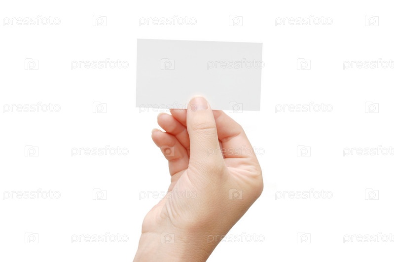 Визитка в руке на белом фоне