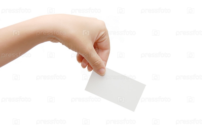 Визитка в руке на белом фоне