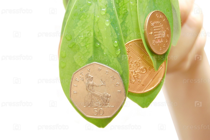 Монеты на зеленых листьях