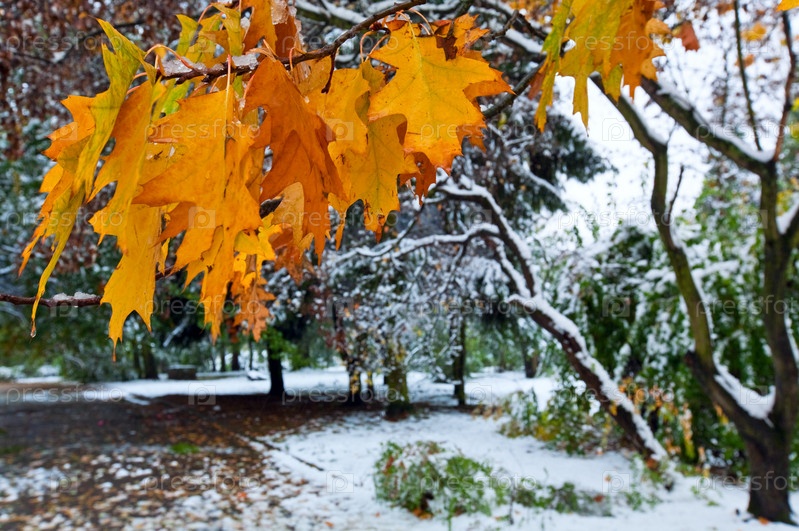 Первый снег в городском парке
