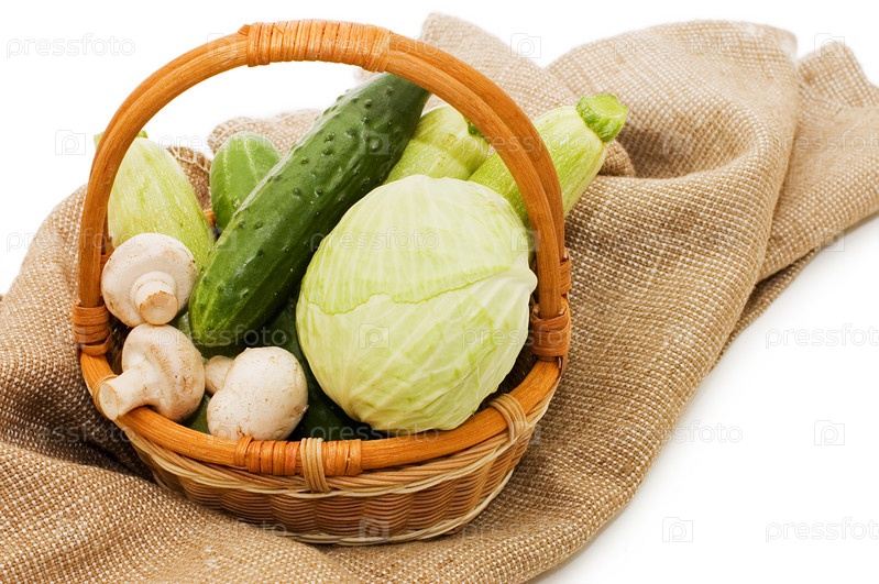 Корзина с овощами на мешковине