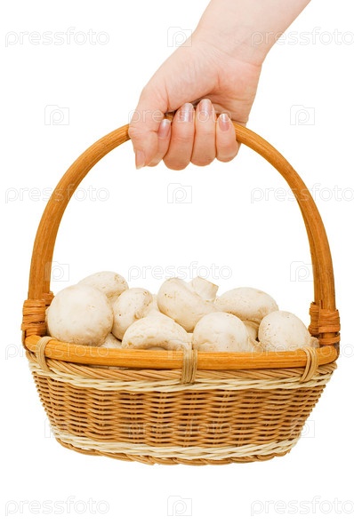 Корзина с шампиньонами в руке