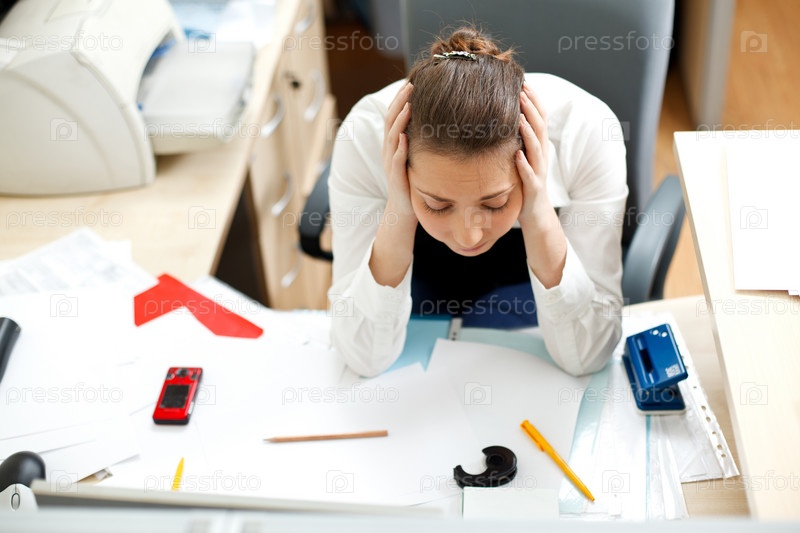 Уставшая от работы девушка, сидящая в офисе