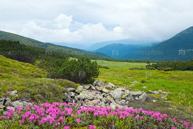 Розовый рододендрон в летних горах (Украина, Карпаты)