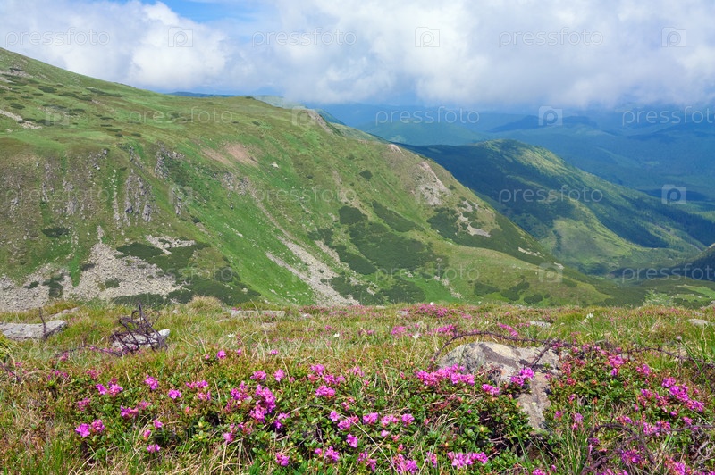 Розовый рододендрон в летних горах (Украина, Карпаты)