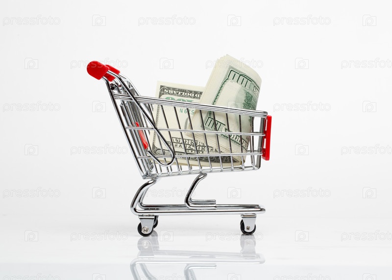Тележка для супермаркета с банкнотой