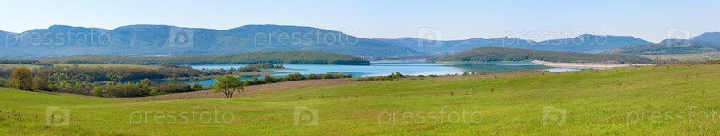 Красивое озеро весной и луг перед ним (Крым, Украина)