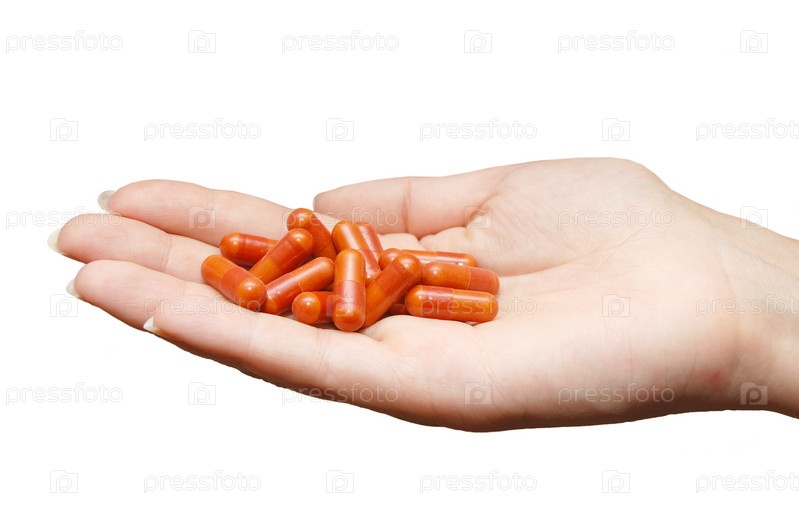 Оранжевые капсулы на женской ладони