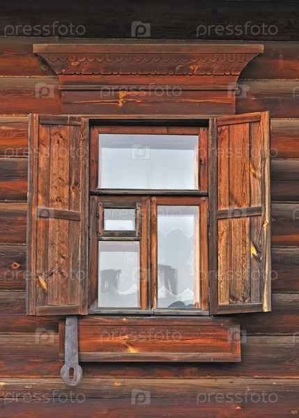 Окно с деревянными ставнями в русском загородном доме