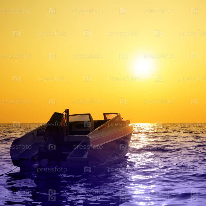 Моторная лодка в море на закате