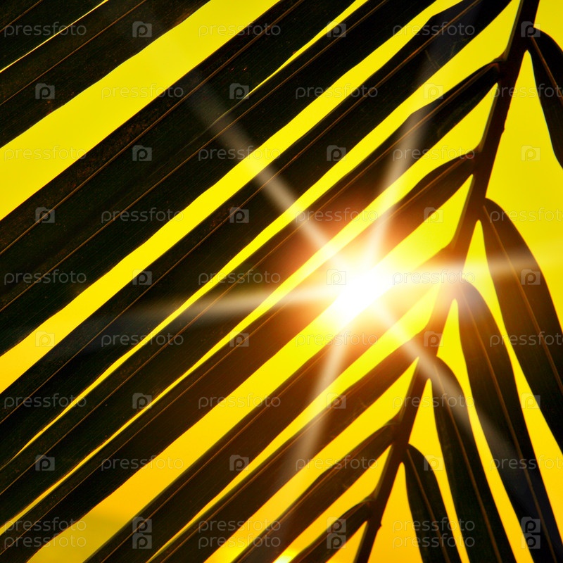 Солнечные лучи, виднеющиеся сквозь пальмовые листья