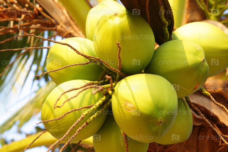 Зеленые кокосы на пальме
