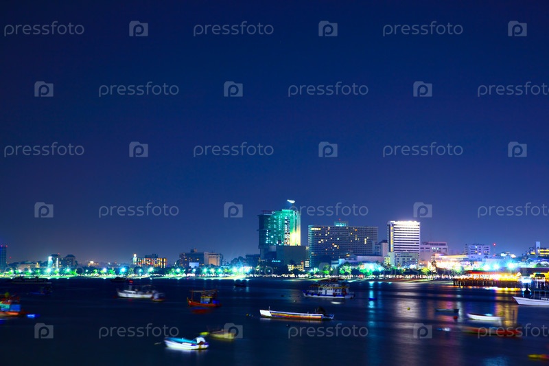 Вид на город Паттайя ночью, Таиланд