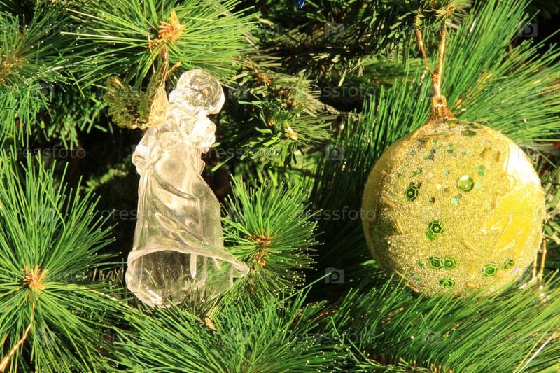 Елочные украшения на ветке