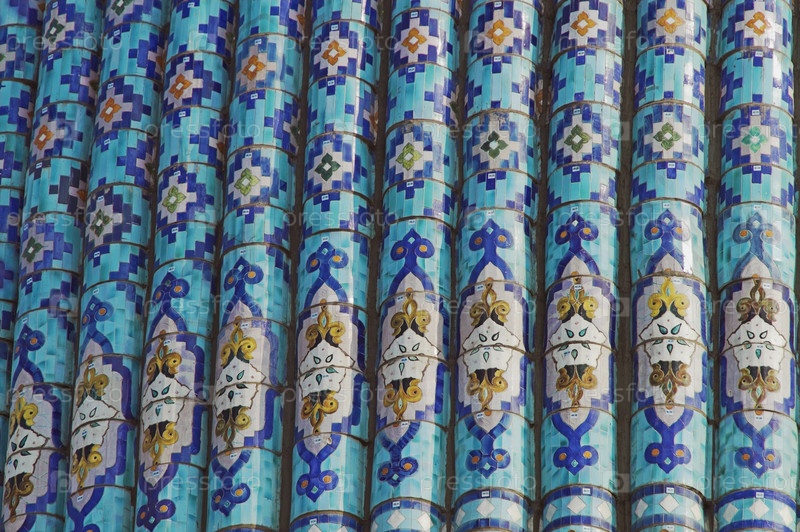 Фрагмент стены древней мечети, покрытой плиткой с арабской мозаикой, в Санкт-Петербурге, Россия