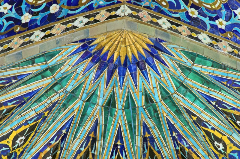 Фрагмент стены древней мечети, покрытой плиткой с арабской мозаикой, в Санкт-Петербурге, Россия