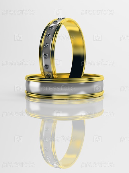 Обручальные кольца с бриллиантами на белом фоне