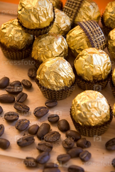 Шоколадные конфеты и зерна кофе