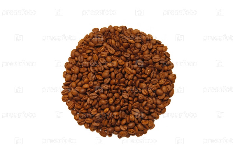 Круг, выложенный из кофейных зерен на белом фоне